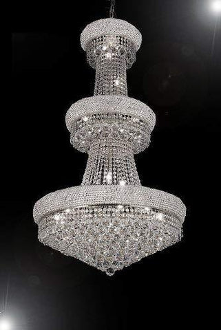 100% CRYSTAL CHANDELIER, this Empire chandelier is characteristic of the grand chandeliers which decorated the finest Chateaux and Palaces across Europe and reflects a time of class and elegance which is sure to lend a special atmosphere in every home. This item comes with 18 inches of chain. SIZE: H.50" W.30" 24 LIGHTS.