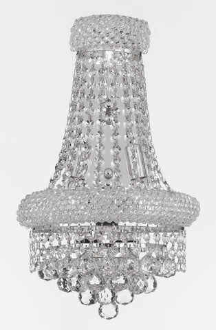 This beautiful wall sconce is trimmed with Empress Crystal (TM). Whether placed in a hallway, dining room, or foyer these magnificent wall sconces makes the ultimate statement. True to the Empire original, these wonderful wall sconces are made of the finest materials and are fashioned in the same manner that European artisans have used for generations. Dressed with 100% crystal, these wall sconce are characteristic of the grand wall sconces which decorated the finest Chateaux and Palaces across Europe. They reflects an era of class and elegance, and are sure to lend a special atmosphere in every home