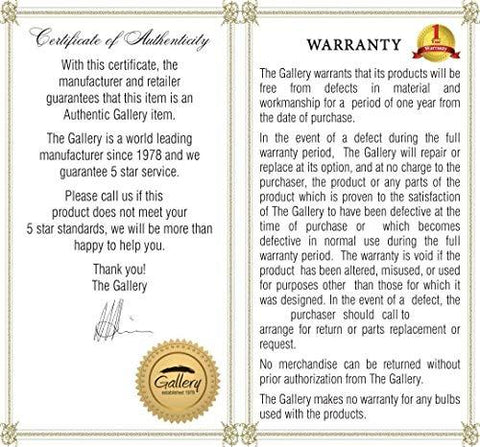 2. Each item comes with a Gallery backed warranty (Established 1978).