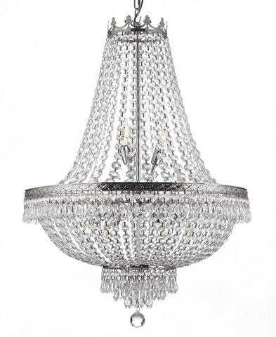 Set of 2 - French Empire Crystal Chandelier Lighting H50" X W24" Good for Foyer, Entryway, Family Room, Living Room and More! This beautiful Chandelier is trimmed with Empress Crystal(TM) 100% CRYSTAL CHANDELIER, this chandelier is characteristic of the grand chandeliers which decorated the finest Chateaux and Palaces across Europe and reflects a time of class and elegance which is sure to lend a special atmosphere in every home. This item comes with 18 inches of chain. SIZE: W24" H50", 15 LIGHTS Assembly Required